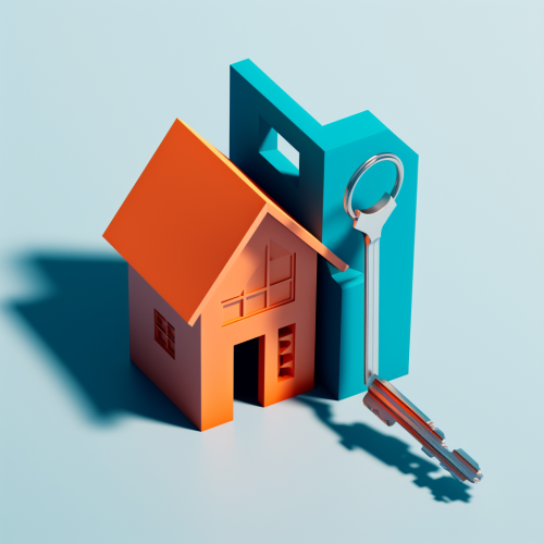 Blue and orange contrast key with a house silhouette representing Airbnb accommodation; white background, unreal engine, minimalistic, by Ivan Chermayeff --v 5.0