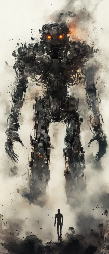 Eerie and ethereal dark fantasy metal golem art.