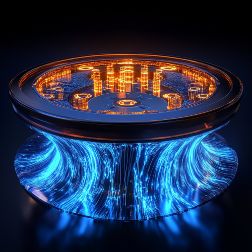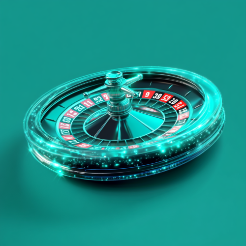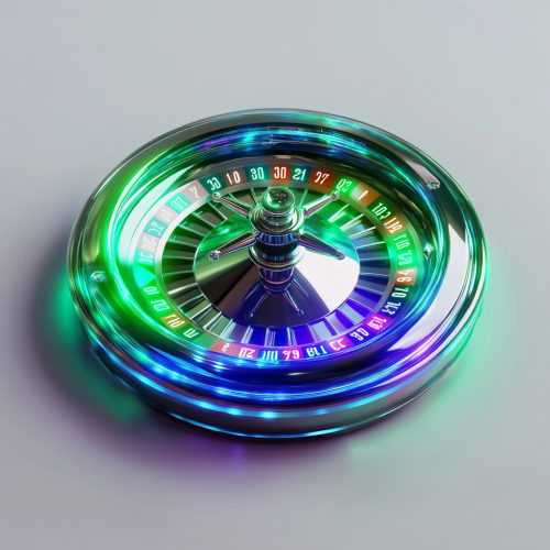 A shiny, detailed digital art of an open roulette wheel with green and blue colors, representing gambling or casino games. The background is a gradient from light to dark green, creating contrast between the white space around it and the central subject. There is no text on top of the circle, highlighting its beauty as the focal point in front of a vertical background