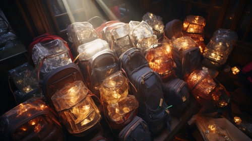 collection of backpacks cartoon style assets,minimal shapes,desaturated colors ,isolate on white background --style raw --no photo-realistic, lights, shadows, textures, outline --v 6.0
