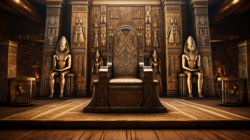 Imagine the mortuary of Thutmose III, Pharaoh of Egypt, bustling with activity as priests prepare for the sacred ritual of mummification. In the dimly lit chamber, adorned with hieroglyphs and sacred symbols, the air is heavy with the scent of embalming herbs. A large stone slab serves as the altar for the mummification process, surrounded by an array of meticulously crafted tools and vessels. Priests, dressed in elaborate linen garments adorned with symbols of their office, move with solemn purpose as they carry out each step of the ritual. The chief embalmer, distinguished by his ornate headdress and ceremonial staff, oversees the proceedings with unwavering focus. As the ritual unfolds, the rhythmic chanting of prayers fills the chamber, invoking the protection of the gods and ensuring the safe passage of the pharaoh into the afterlife. Amidst the reverence and solemnity of the moment, the ancient art of mummification is carried out with reverence and precision, honoring the legacy of Thutmose III for eternity.