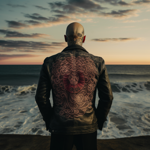 gorgeous girl with shaved head, sunglasses, silver nose piercing and long earrings and arm tattoos, holding a flower::3, street cafe in the background, painting by Paula Modersohn-Becker, Josan Gonzalez, Jim Fitzpatrick, in the style of moody tonalism, avant-garde symbolist editorial, visible pores and lines, dynamic, expressive, action shot --v 5.2 --c 7 --ar 4:5