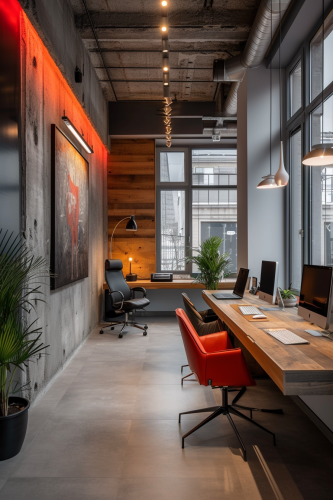 An office in a room dedicated to electronic marketing with a modern style --ar 2:3 --v 6.0 --style raw --s 250