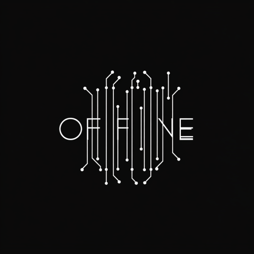 Minimalist logo design for underground electronic music events. Text 'O.F.F.L.I.N.E' with dots between each letter. Bold, futuristic sans-serif font. White text on black background. Subtle circuit board or waveform pattern integrated into one or two letters. Slight digital glitch effect on edges. Clean design with a hint of techno aesthetic. Evokes underground warehouse party atmosphere. Versatile for various applications: posters, social media, merchandise