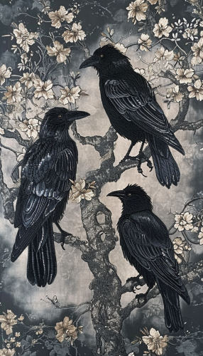 Celestial Shadows, Starlit Crows, Pastels, 3D Embroidered pattern --ar 4:7 --v 6.0
