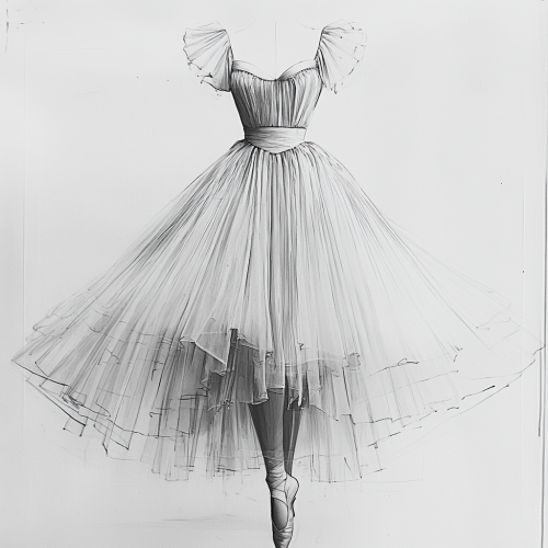Costume sketch for the white romantic long skirt to be worn by the ballerinas in the Swan Lake ballet and to be used in the stage performance.16:9 aspect ratio --s 250