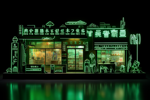 Elegant and eye-catching storefront sign for 韓サムMART, showcasing the name in vibrant green font against a sleek, dark background, incorporating abstract icons of Korean cuisine items --ar 3:2 --v 5.2