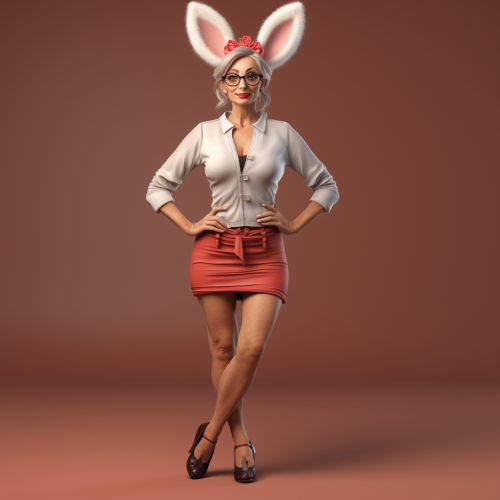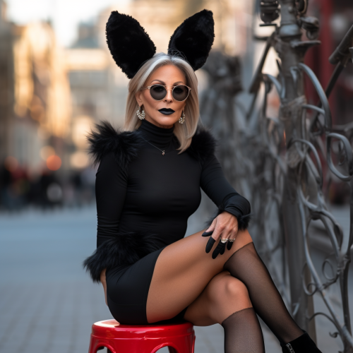 attractive mature female wearing bunny ears, very detailed, very realistic faces, legs can be seen, professional camera, long shot --v 6.0