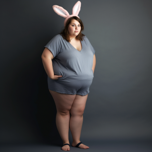 chunky woman wearing bunny ears, very detailed, very realistic faces, legs can be seen, professional camera, long shot --v 6.0
