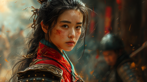 The beautiful 6-year-old prince with blonde hair and the lovely 15-year-old female knight who protects him