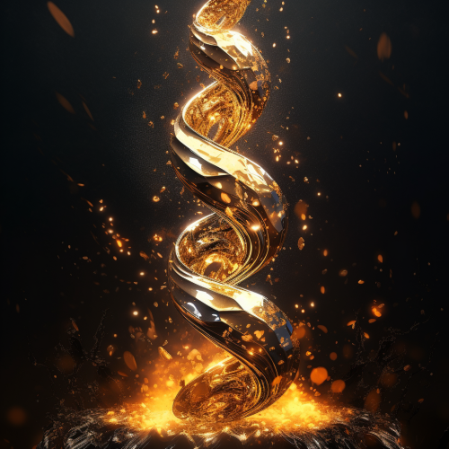 Design an abstract artwork fluid enso circles, and circles break into ouroboros. The shapes should appear as if they're floating in a liquid gold background, with textures that mimic molten metal and cracked stone. Add subtle motion blurs to give the impression that the shapes are shifting and evolving. The overall palette should include deep golds, blacks, and muted grays, evoking a sense of luxury and fluidity --ar 5:3 --style raw --v 6.1