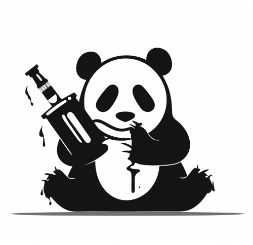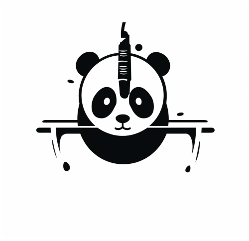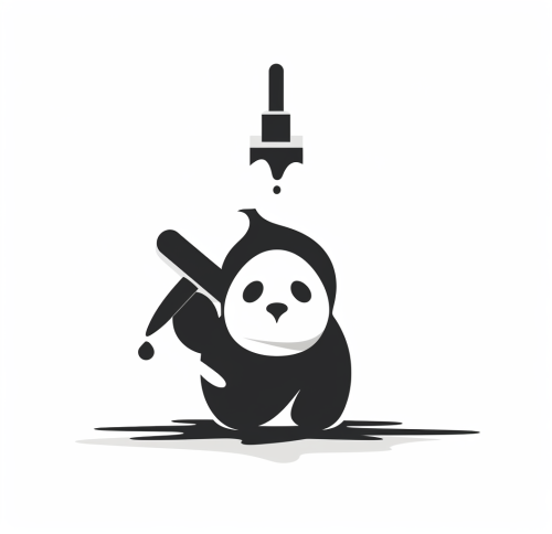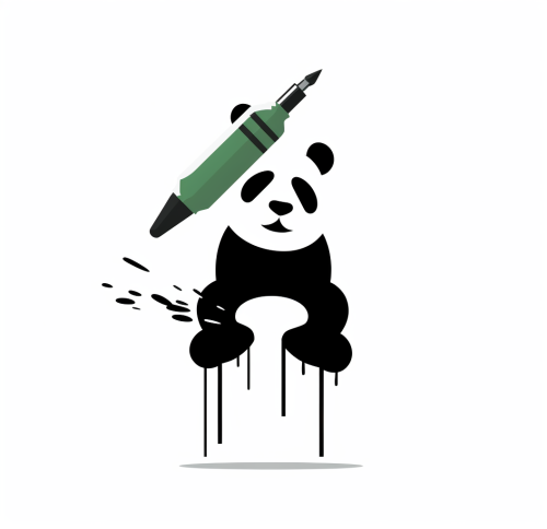 Simple, flat vector logo of the silhouette icon of a cartoon panda with an ink fountain pen, on a white background, in the style of Paul Rand – no text. --ar 35:34 --v 5.0