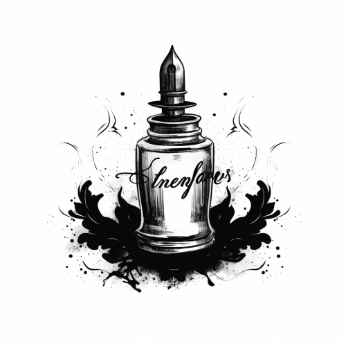 Create a black and white logo. Inkwell with ink fountain pen old german style. No nib