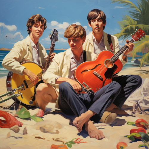 10 friends playing musical instruments at a bar table with girls around having fun and dancing in brazil, crownd, realistic, guitar, percussion, public --s 750 --v 5.2