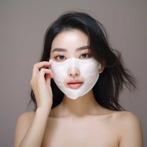 The white Facial paper mask at home,Asian Korean girl ,realistic photography, natural light,enjoy,happy,skin care,in restroom