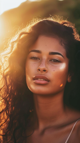 A latina woman with beautiful glowing skin, looks like she had great skin care in a semi-realistic artstyle --s 0 --ar 9:16 --v 6.0