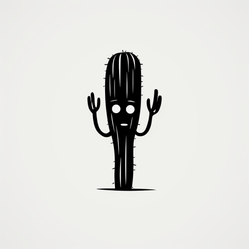 design minimalist a cactus with eyes, hands and feet in One line art Minimalist in black and White