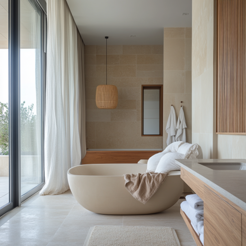 israel design, master bathroom, master bedroom, Natural and bright materials The choice of natural materials such as light wood in combination with light neutral tones creates a feeling of lightness and light. Wood, when used thoughtfully, radiates warmth without weighing down the space, and at the same time strengthens the feeling of openness and airiness --v 6.1