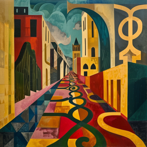 cathedral french emotion, historical oil paint with celtic tracery by picasso --ar 4:3