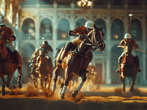 A classic editorial style advertisement, image displaying a polo club match, intricate details, photo realistic,cinematic lighting, 16K resolution, vivid, octane rendered elements, panoramic view, Wes Anderson style photography , view from a close distance, shot on Hasselblad --ar 4:3 --v 6.0