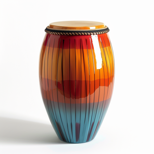 Ein minimalistisches Produktfoto einer Conga, freigestellt auf einem weißen Hintergrund. Die Conga ist in lebhaften Farben dargestellt, mit einer glänzenden, polierten Oberfläche und klar definierten Details. Der Fokus liegt auf der Ästhetik und der Form des Instruments, hohe Auflösung und Studio-Qualität --ar 1:1 --v 6.0 --style raw