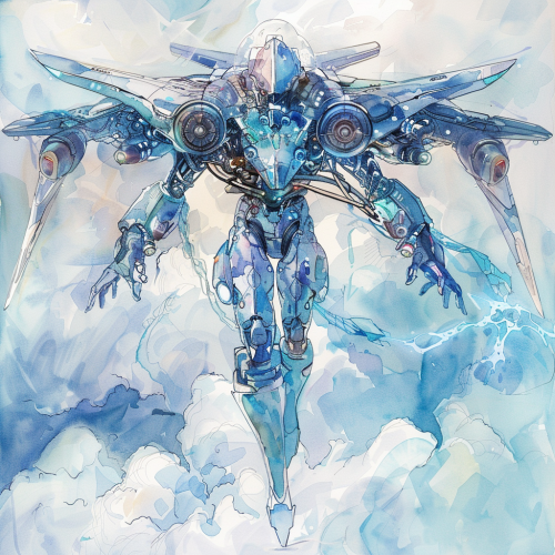 A Vacuum Elemental in a fantasy world, depicted in a watercolor style. The humanoid figure appears to be formed of swirling, empty space, with a body that seems to pull in the surrounding environment. Its limbs are elongated and mist-like, with sections of its body fading into nothingness. Parts of it resemble the suction power of a vacuum, drawing in dust, debris, and even light. Its eyes glow faintly with a dark, void-like energy. The background shows objects being pulled toward it, floating in a distorted, swirling vortex, with soft watercolor shades of grays, blacks, and blues creating an eerie yet captivating atmosphere. --v 6.0