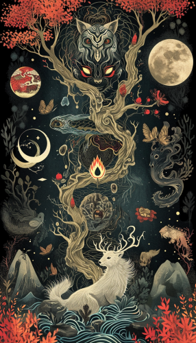 Elemental Creatures, Nature and Elemental Symbols, Elemental, pattern --ar 4:7 --v 6.0