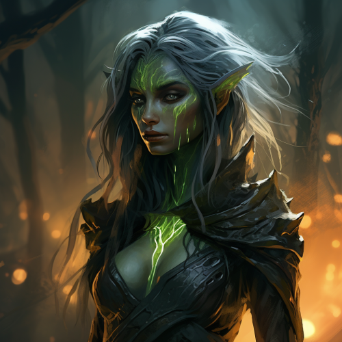 A woman holding a bottle of green potion. She’s dressed in vintage cabaret attire, with emerald gloves and a jeweled headpiece. Purple and green mist wafts around her, creating an air of mystery. vintage poster style. --ar 2:3 --v 6.0