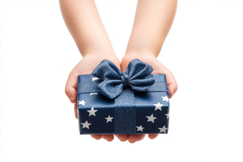 A gift box delivered from the screen of the iPhone 15 to the real world. The gift box is wrapped in beautiful gold ribbon. cinematic lighting. white minimal background. Shot with a commercial camera. --v 6.0