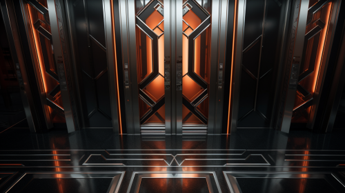 a single close up of an elevator door in a business building --ar 16:9