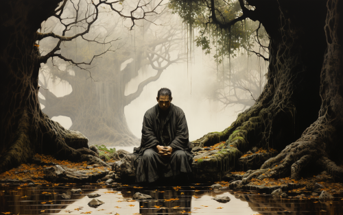 a martial arts monk meditating to cultivate the cosmic energy of the universe using his body as a conduit