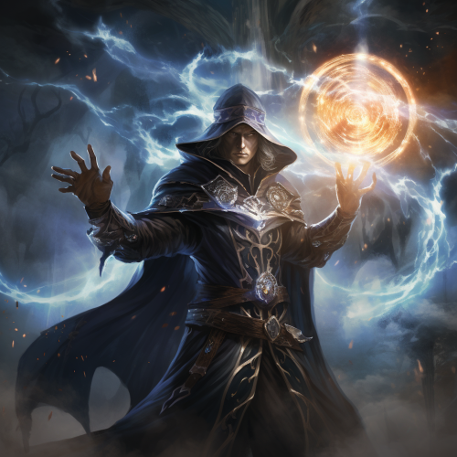 Elf wizard with elf queen and blue portal behind