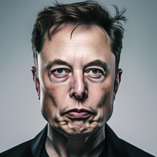 Elon musk turned to the right side of the camera, angry, on a light grey background