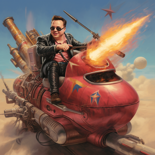 GTA 5 loading screen freaturing Elon Musk, typical art work --ar 16:9