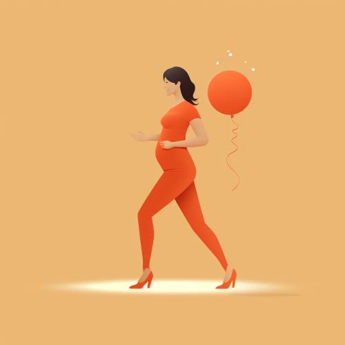 Create an image where a young blonde italian woman is holding a smartphone, looking at the screen with a mix of curiosity and surprise. On the phone's screen, there is a realistic depiction of herself with a visible baby bump, as if she is using a pregnancy filter on Instagram. The filter subtly alters her appearance to show her as pregnant, while keeping the background and the phone’s interface intact. The setting is modern and well-lit, emphasizing the contrast between her real self and the digital transformation displayed on the phone. --ar 9:16