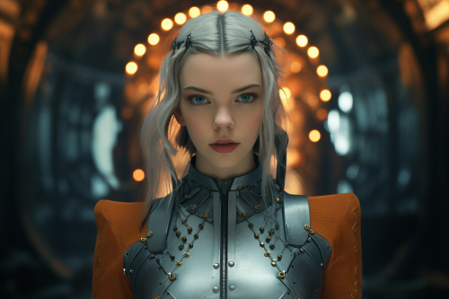 Dark Beauty, ethereal beauty, exotic beauty, Dramatic photography, extreme surreal dream costuming, contrapasto posing, Radical anatomical fashion statement. Forbidden Beauty: Anya Taylor Joy as an ancient voodoo steampunk astronaut from the underbelly of Tekkonkinkreet, gritty, grime, oil and rust, wearing a radically infinite and damaged open-framed gyroscopic fractal technology micro tube Suit, athletic minimal wear, torso wear, dark technology, constriction and expansion, darker beauty, surreal and fantastic, Gyroscopic technology, wire tensile support mechanics, transparent temperatiure circulation technology, atomic theory design, scientific beauty, beautiful wonder, as she visits the Demon's Corridor, flooded tekkonkinkreet slum, photography by Eugene Atget and Vivian Maier, --ar 4:5