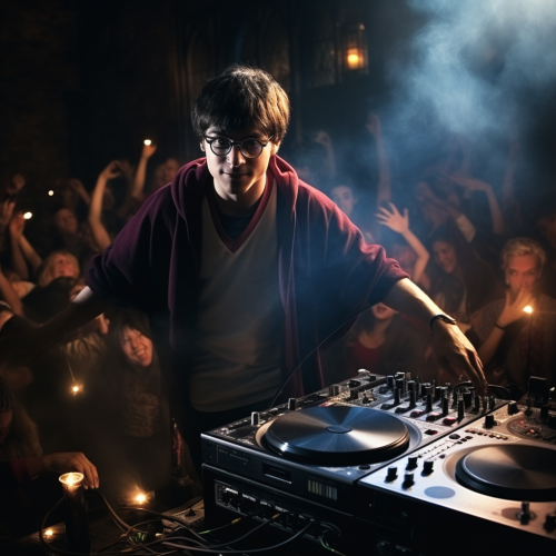 anime illustration of people dancing on a festival, big crowd, hands up, dancing, anime, purple colours, --ar 16:9