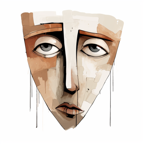 simple black and white line drawing of a distressed man's face, dark, depressing, simplex