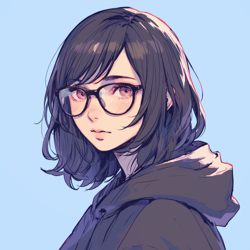 Please create an image of a person in their 20s with glasses, medium-length black hair, wearing a hoodie, and a medieval-looking face that is neither male nor female. --niji 6
