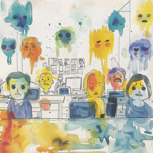 Imagine an image of a human face divided into several sections, each section representing a different emotion such as happiness, sadness, anger, fear, surprise, and disgust. Inside each section, there could be various facial expressions and body language cues associated with that emotion. The image could also include arrows or lines connecting these sections to a central area, symbolizing the idea that emotional intelligence involves the ability to recognize, understand, and manage these emotions, both within oneself and in others. Additionally, you could add elements like a brain with thought bubbles connecting to each emotion, illustrating the cognitive aspect of emotional intelligence, where one understands the underlying thoughts and reasons behind emotions. This image would visually represent the concept of emotional intelligence, emphasizing the importance of recognizing and managing emotions for better interpersonal relationships and self-awareness.