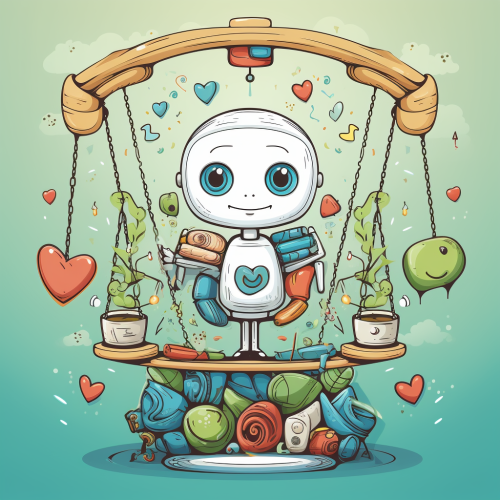 Balancing Artificial Intelligence with Emotional Intelligence, cartoon style, doodle, very soft colors