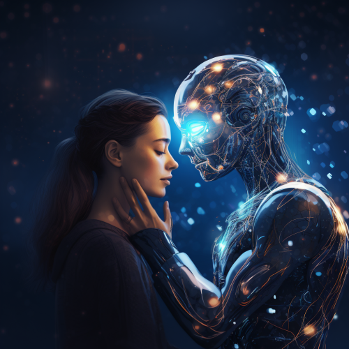 Visualize AI as a source of emotional intelligence, illustrating the ways it learns and adapts to human feelings, offering a genuine sense of caring