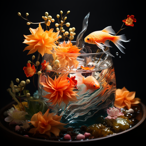 fishbowl as cocktail glass with koi fish inside, illustration, cocktail glass, koi fish --s 750