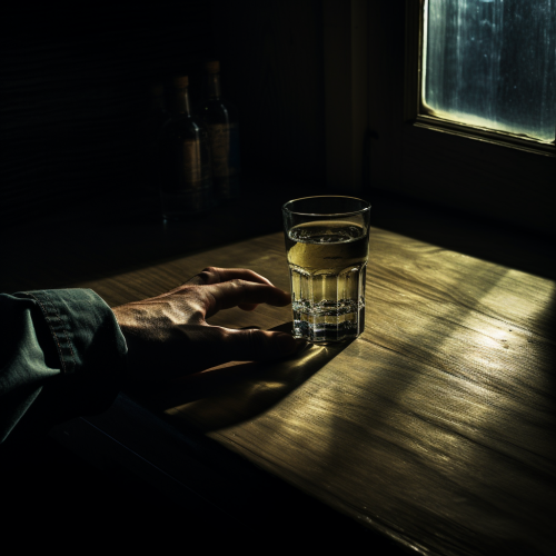 a poorly drawn pencil drawing of a drunk skeleton at an empty bar