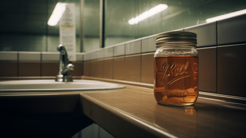 Closeup of Empty Jar on Public Restroom Sink