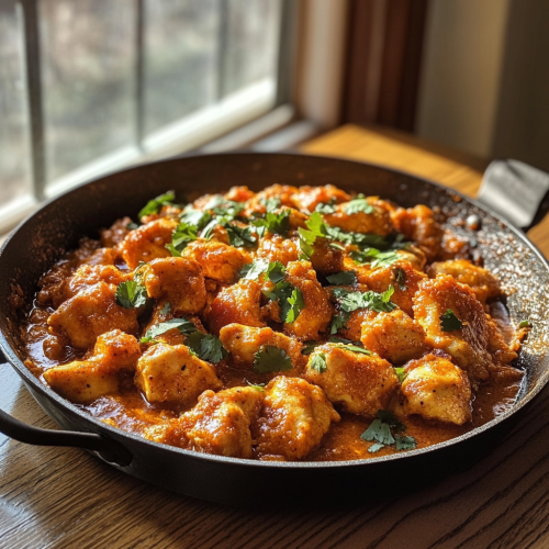 RECIPE NAME: Crispy Butter Chicken | Amateur photo from reddit, taken with an iPhone 15 Pro. | SHOT TYPE: taken in a kitchen in front off the window on table