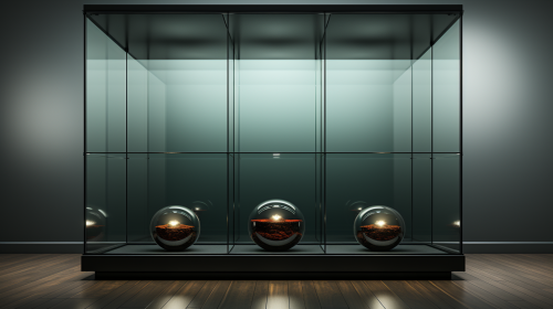 an empty museum at night with a empty glass box surrounded by red laser beams crossing all over the room, high definition, ultra realistic, 4k --v 6.0 --ar 16:9