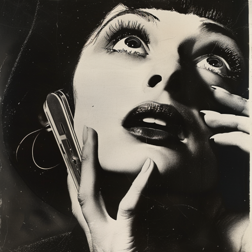 1960s art style, mobile cellphone advertisement, authentic, black and white.