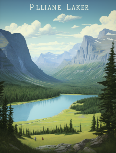 Travel Poster of Glacier National Park by John Lurie --ar 3:4