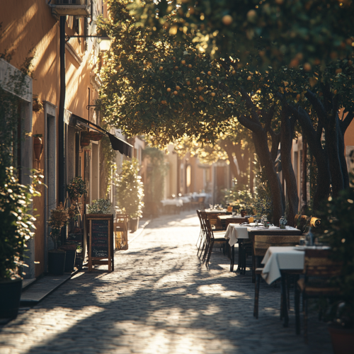 beautiful view of an italian street with shadows of trees where pizza is growing on the trees, ultra detailed, soft lighting, beautifully color graded, Unreal Engine, Cinematic , Color Grading, Photoshoot, Shot on 85mm lens, f1.2, Depth of Field, DOF, 32k, Super-Resolution, Megapixel, Backlight, Natural Lighting, Soft Lighting, Conte-Jour, Beautiful Lighting, Global Illumination, hyper maximalist , elegant, dynamic pose, photorealistic, 8K, volumetric lighting , high contrast , HDR , --style raw